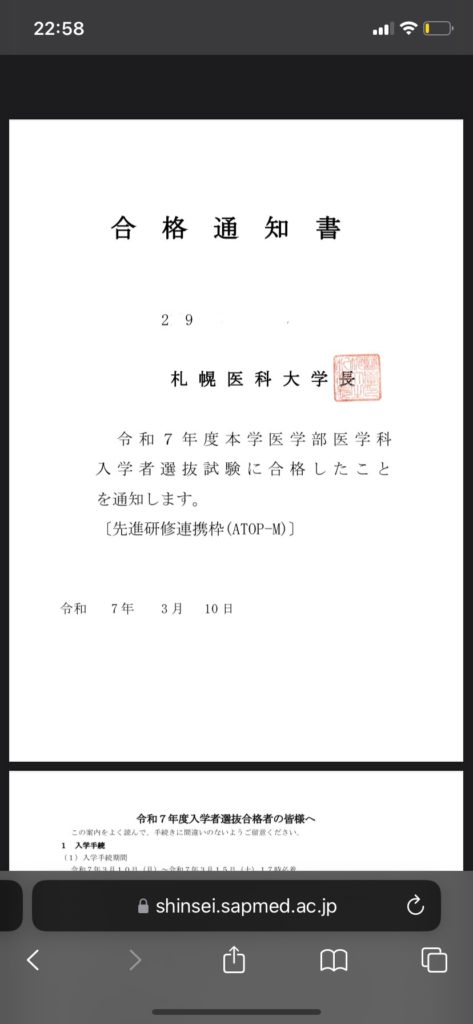 Iさん札幌医科大学医学部医学科 合格おめでとうございます!